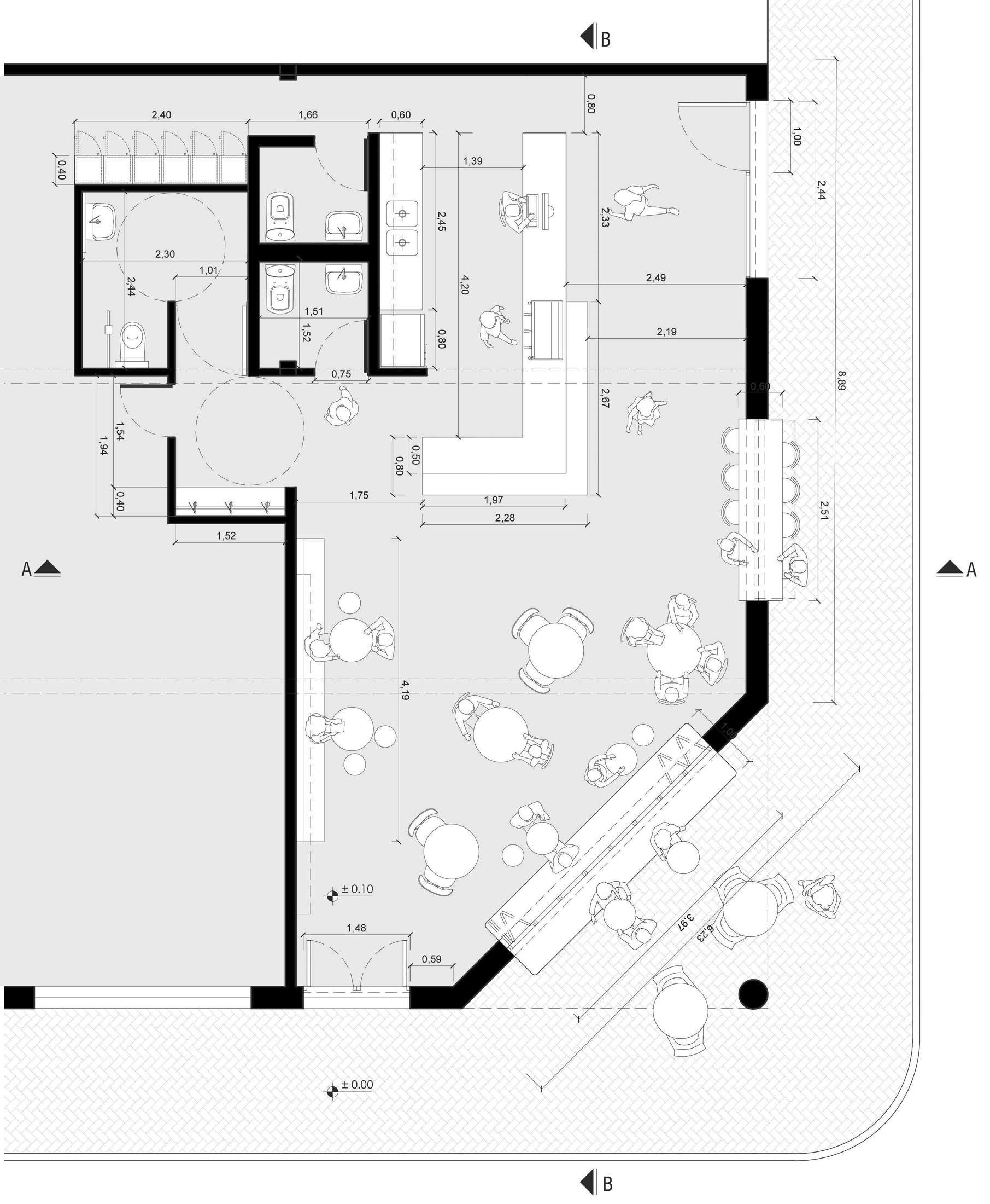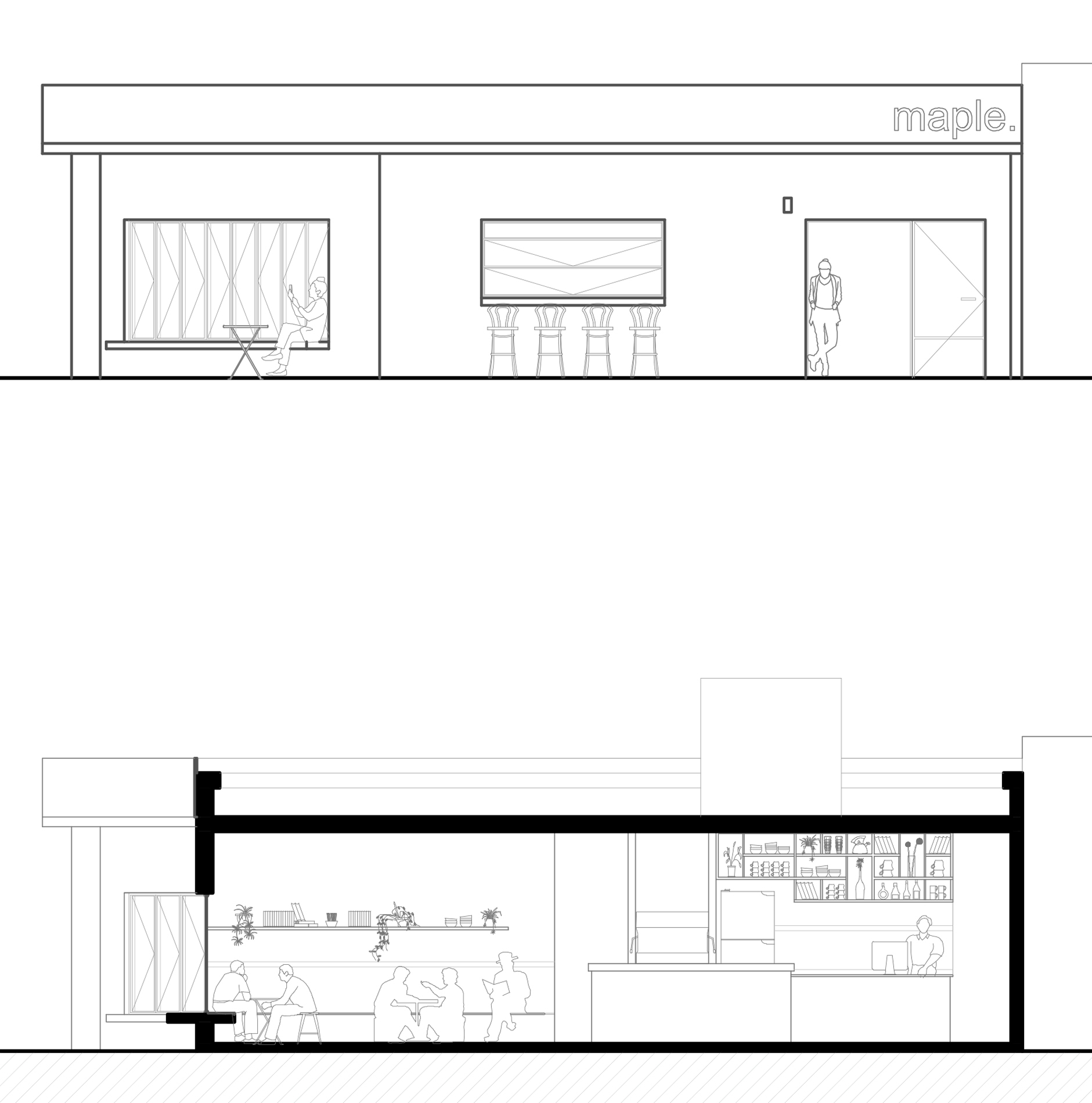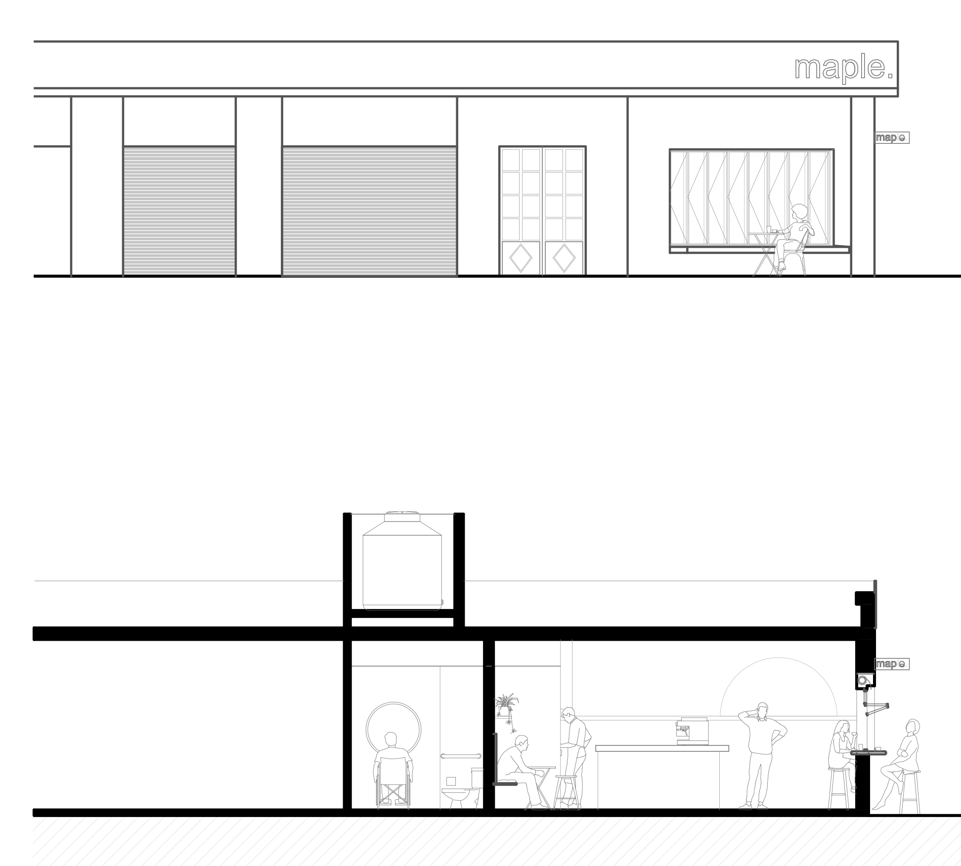 El anteproyecto del bar “Maple” surge como propuesta para un local de la ciudad de Rosario, ubicado en la esquina de Dean Funes y Moreno. La propuesta busca diálogo con las residencias vecinas en cuanto a altura del inmueble y aberturas.