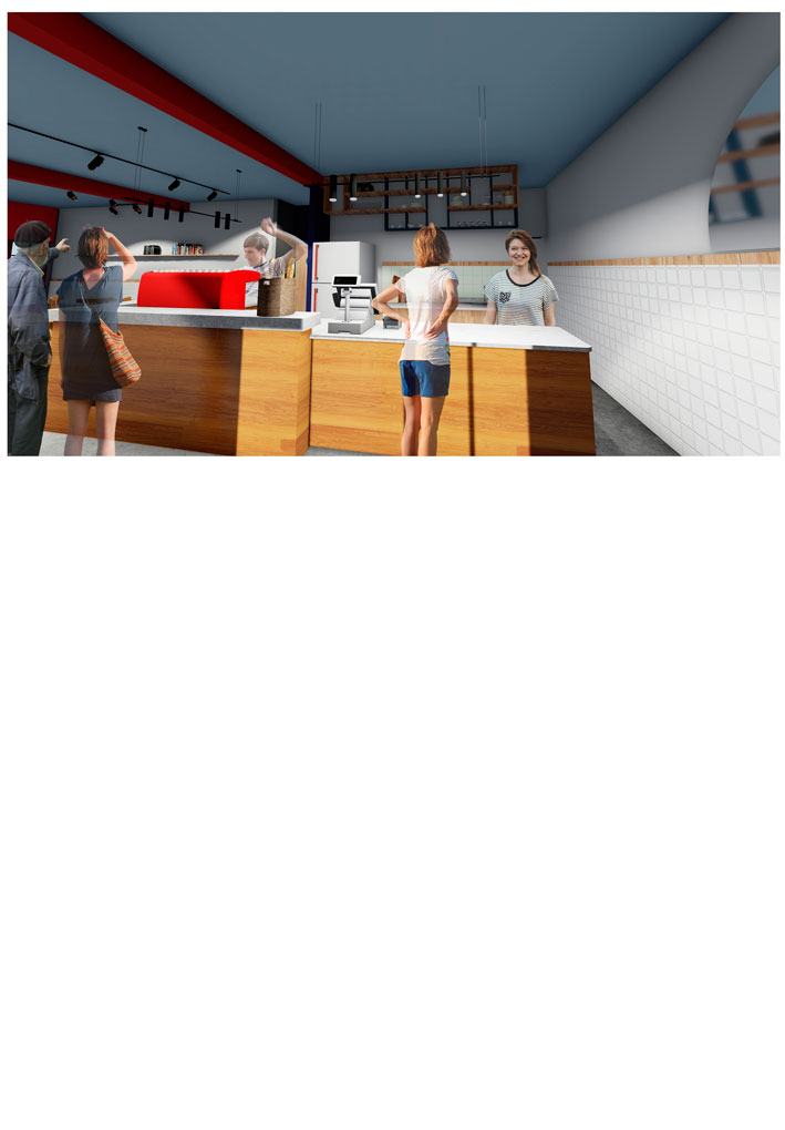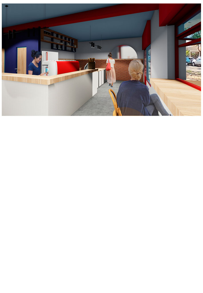 Al brindar una alternativa de delivery, el proyecto presenta dos ingresos, conservando las aberturas originales (con tratamiento de restauración y pintura).