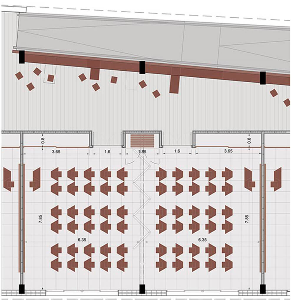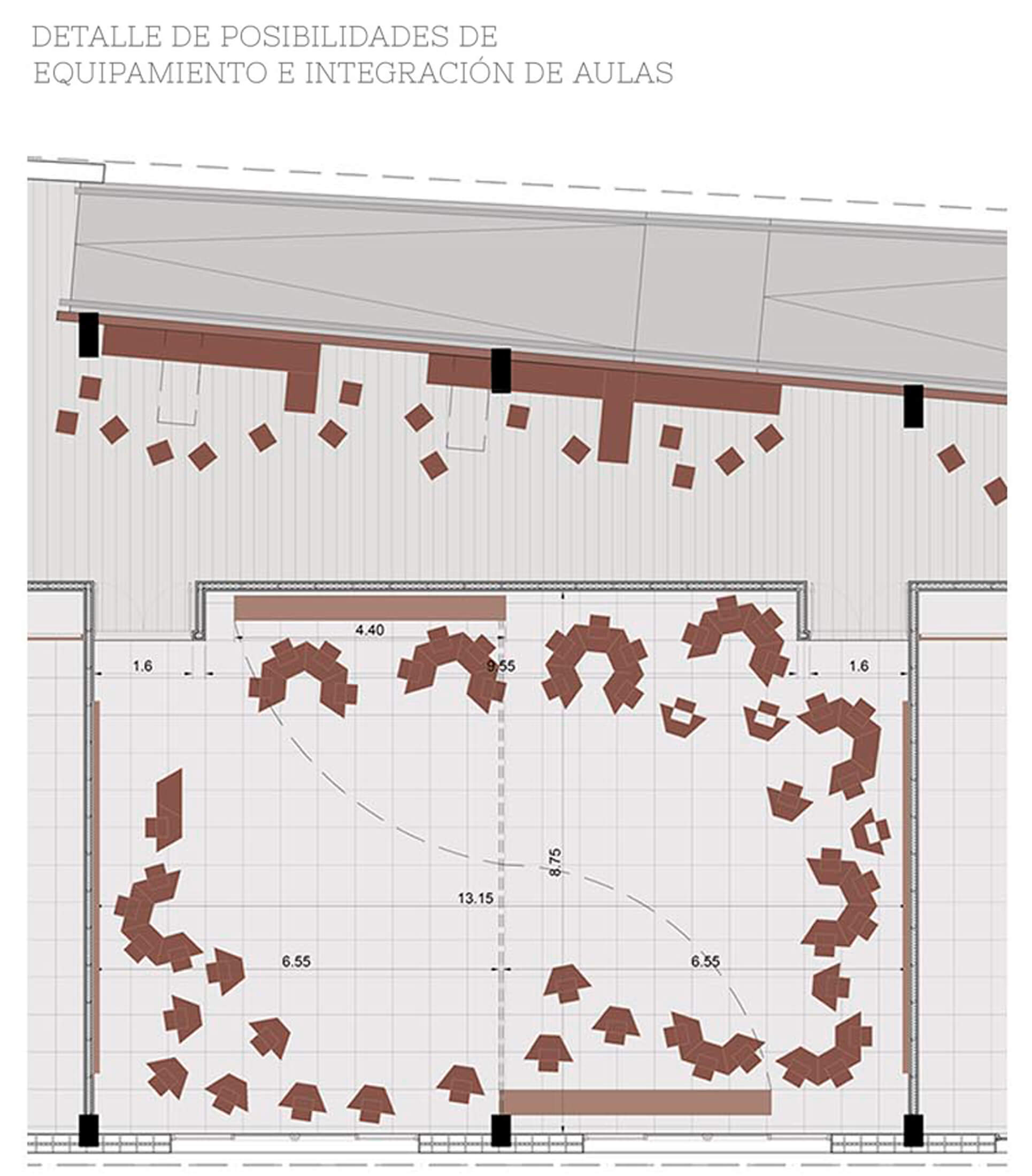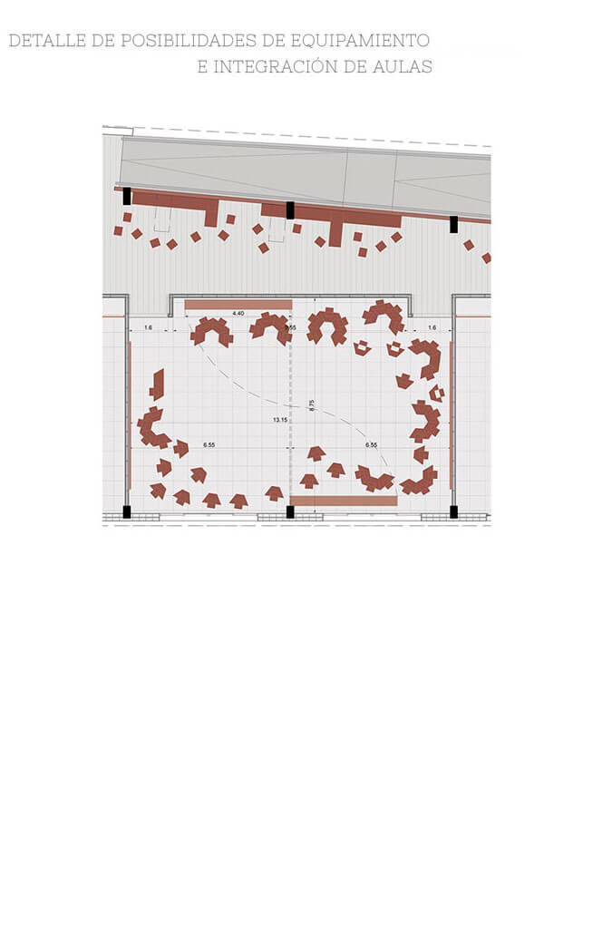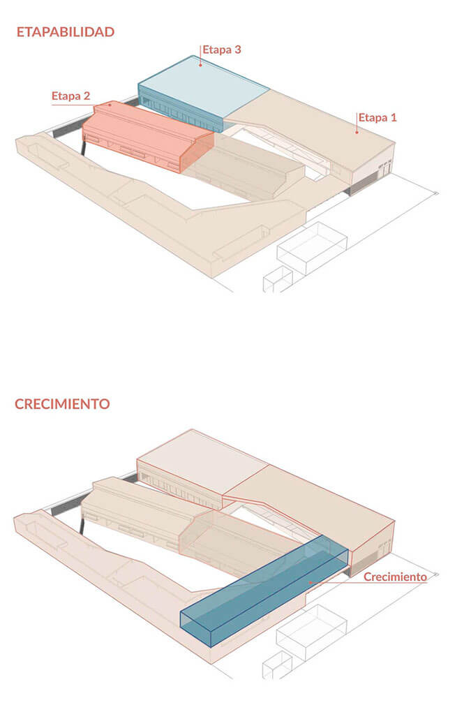 El diseño del edificio para la escuela técnica en Timbués parte de percepciones y del reconocimiento de aspectos particulares identificados al momento de visitar el terreno y sus inmediaciones (edificios singulares y vegetación). A la escuela se la imagina como un lugar de encuentro y uso para toda la comunidad educativa y de la localidad, con propuestas espaciales exteriores e interiores que promueven el encuentro de personas de distintas edades y propician el intercambio y permanencia.