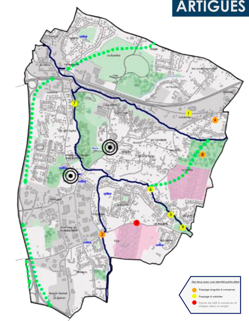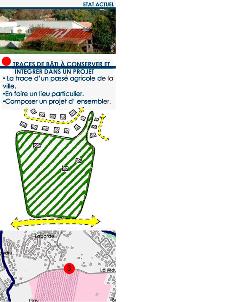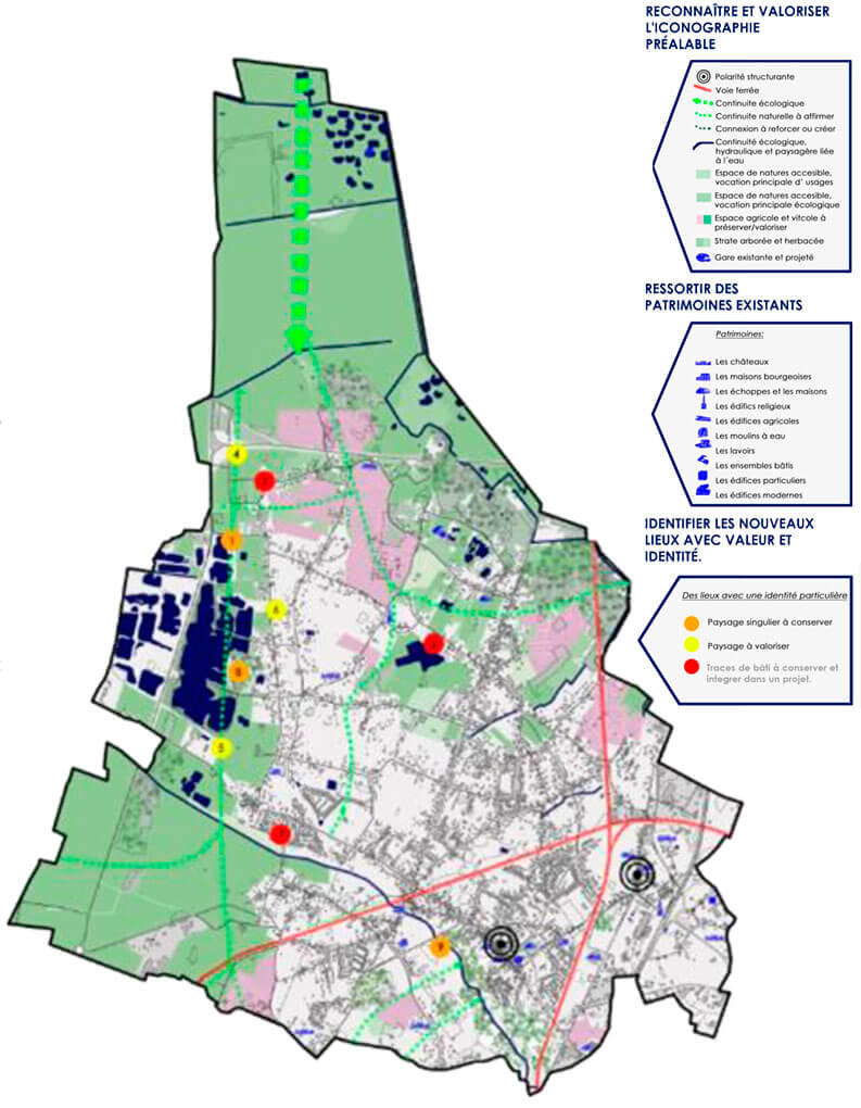 La investigación tenía el objetivo de construir identificadores de cada comuna para reestructurar el espacio público sobre el gran territorio periurbano. Desde el relevamiento situado del territorio se establecieron cuatro categorías de análisis: “paisajes singulares a conservar”, “paisajes para valorizar” y “huellas construidas para conservar” y “edificios para integrar a nuevos proyectos”.