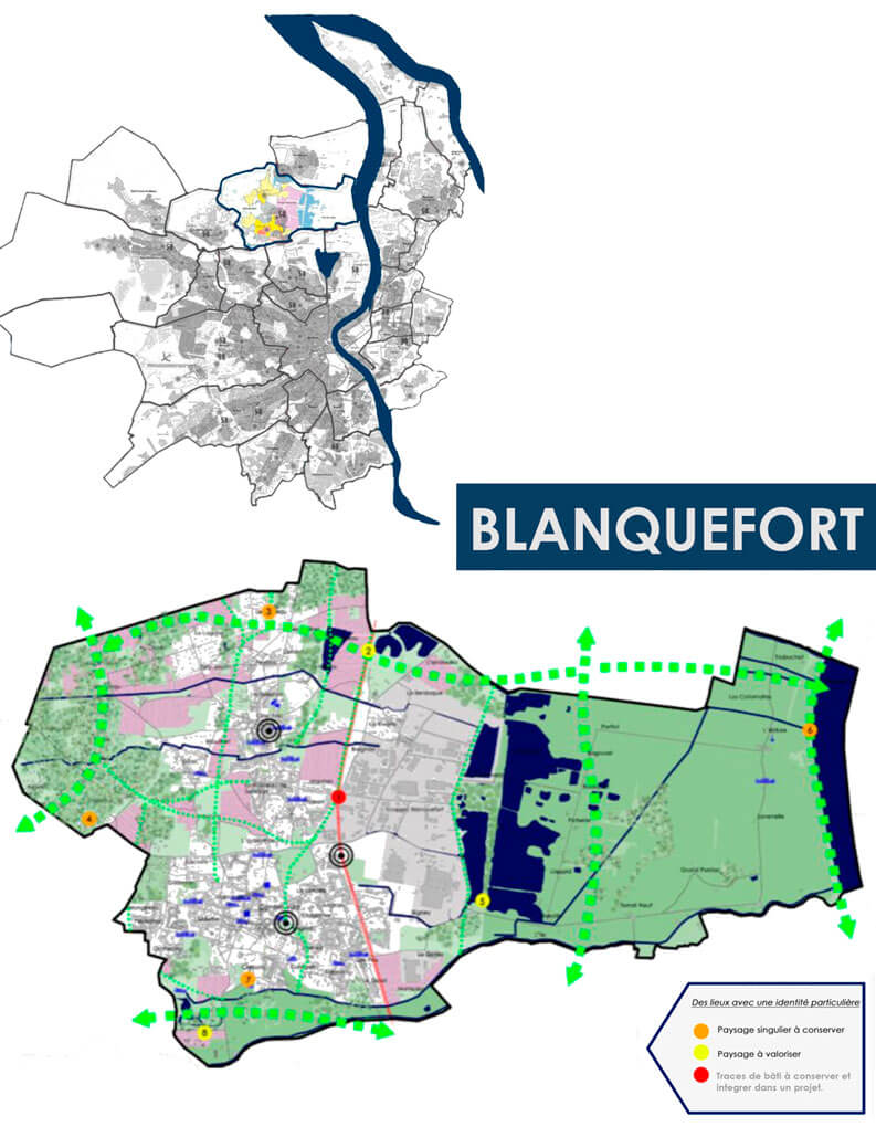 Se trabajó, bajo la dirección de la Dirección de Urbanismo de Bordeaux y la Direcc. de Transporte, Estructura y Tránsito sobre las comunas de Pessac, Cenon, Mérignac, Ambarès-et- Lagrave, Artigues, Saint- Medard en Jalles, Gradignan, Blanquefort y Bordeaux.
